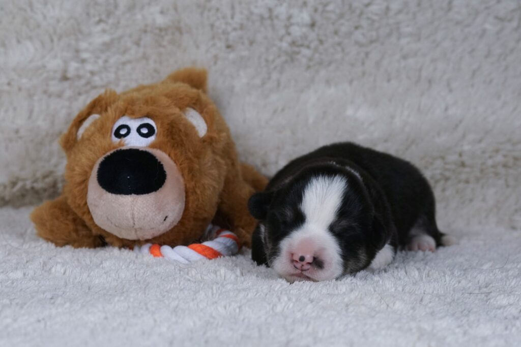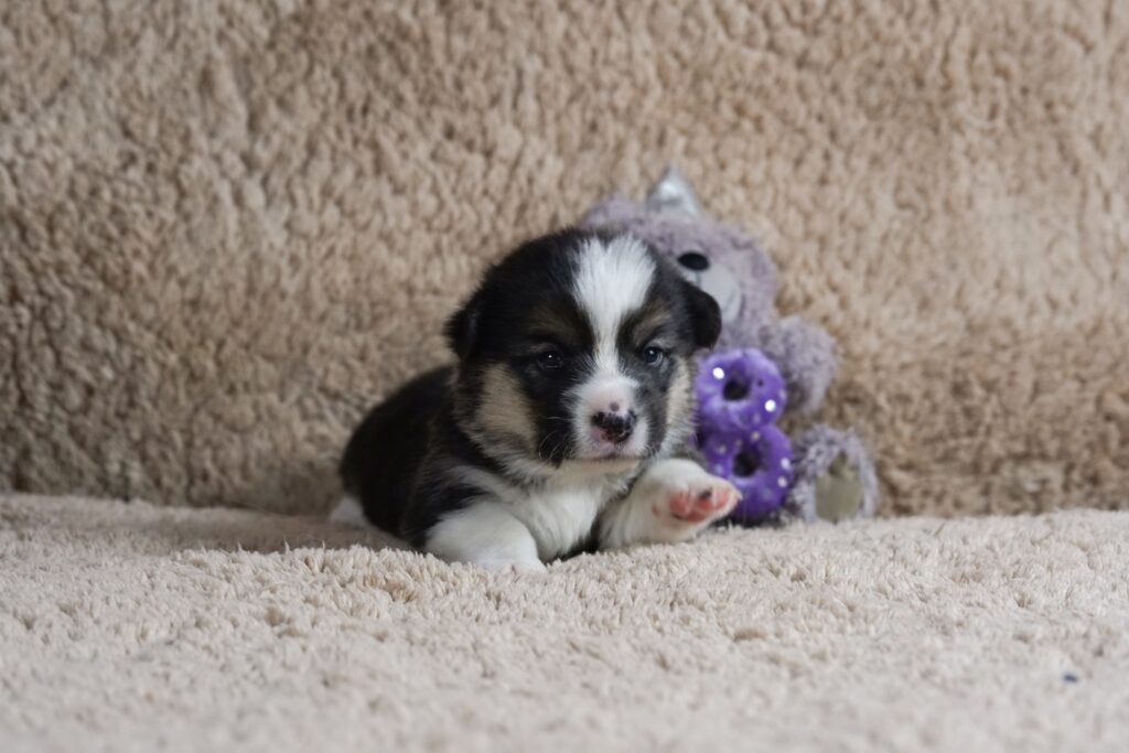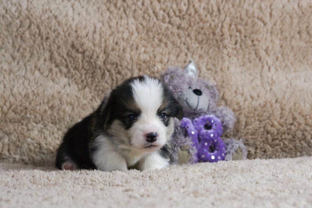 Queene (Black Honey Morgerton) pedig egy különösen gondosan kiválasztott szuka, aki szintén erős vérvonalat képvisel és remek genetikai alapot ad az utódok számára. A Morgerton falkában nevelkedett, és szülői oldalon olyan vonalakat hordoz, amelyek tovább erősítik a fajta standardnak megfelelő, egészséges és karakteres corgi utódok esélyét.